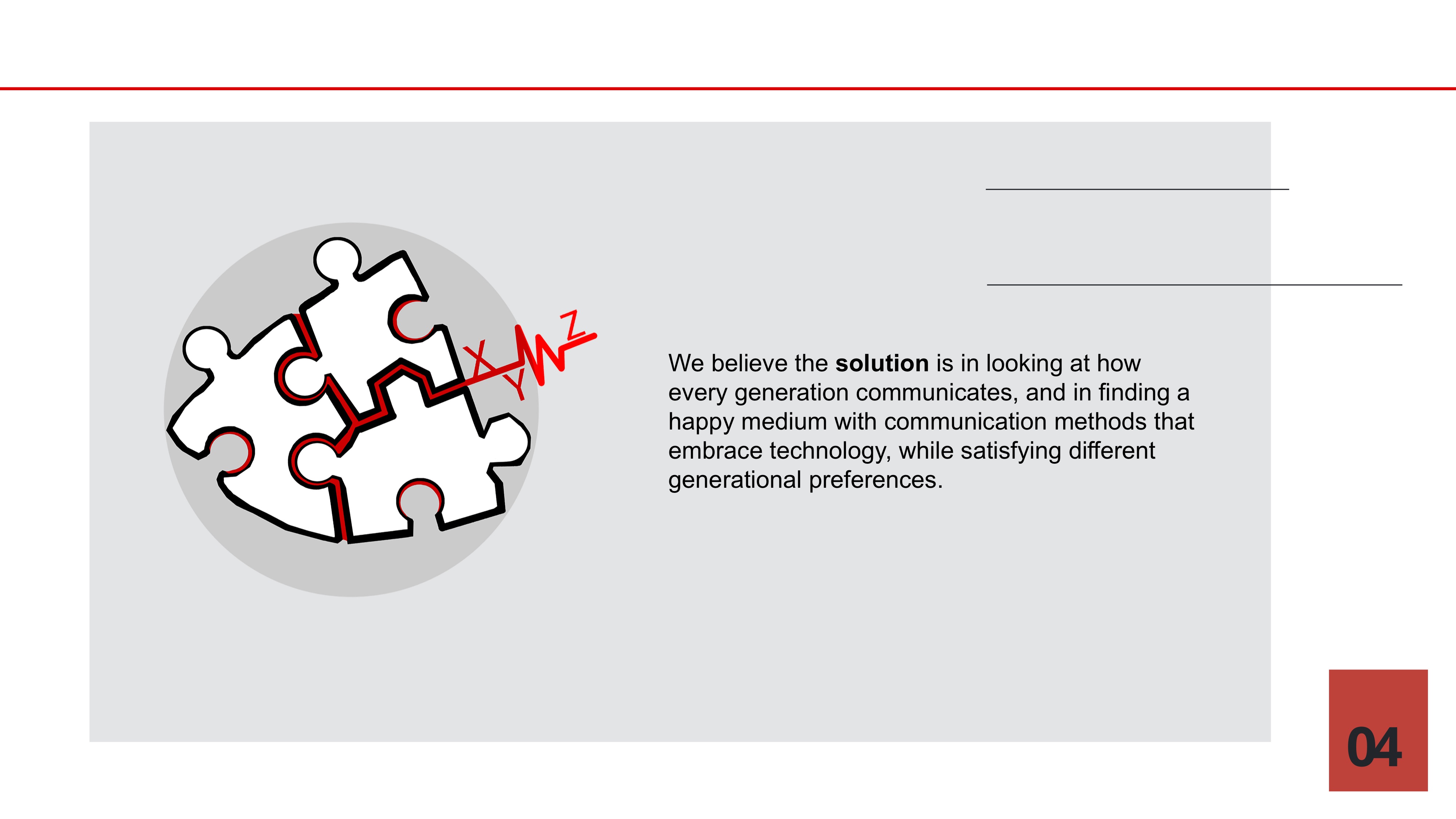 Examine and evaluate generational communication methods to develop a cross-generational method that embraces technology, while also satisfying different generational preferences.SOLUTION
