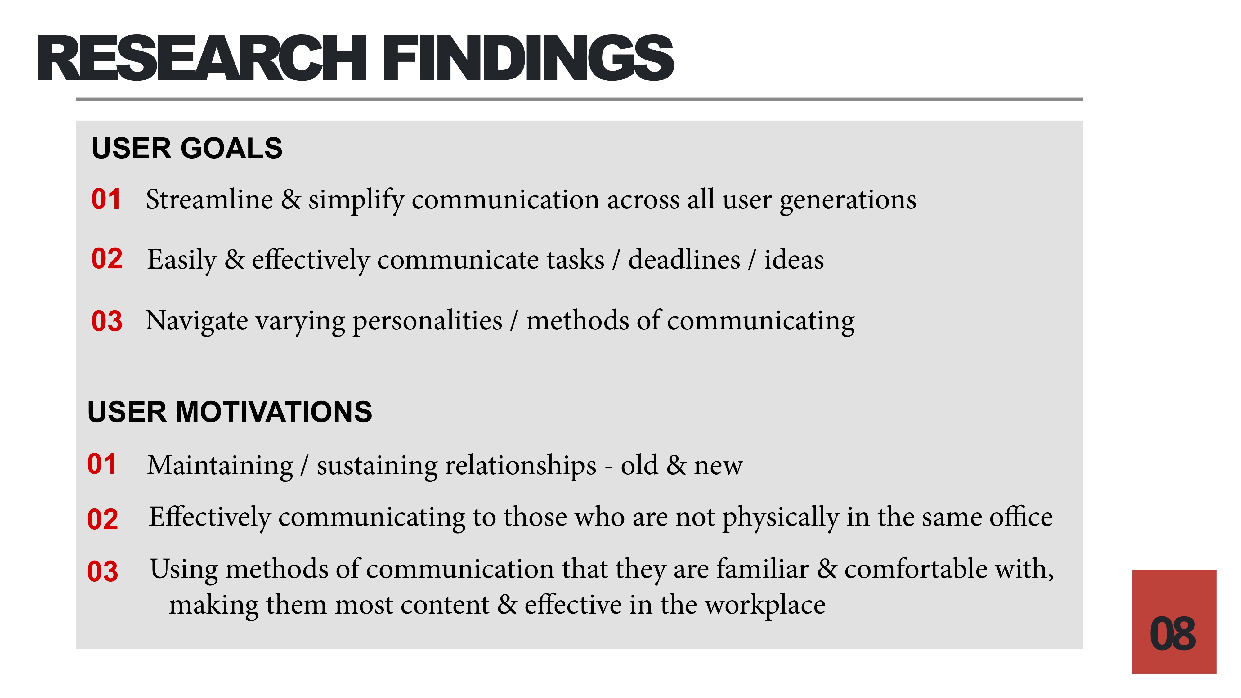 • I consolidated the research and assessed the interview findings, uncovering various communication breakdowns that hinder operational efficiency.